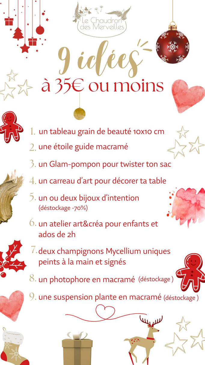 Sans oublier les bons cadeaux sur un objet d'art, un atelier ou un montant à définir ensemble !