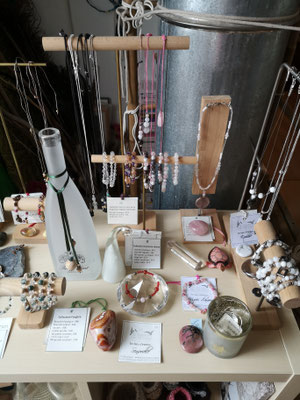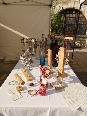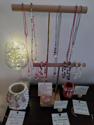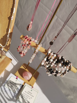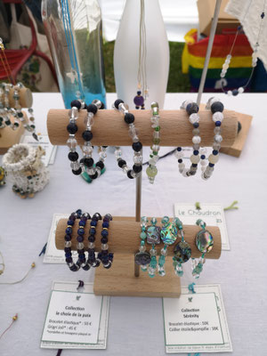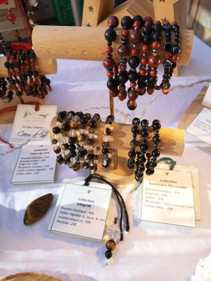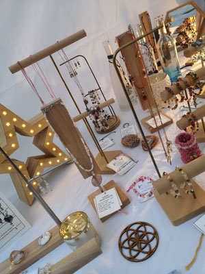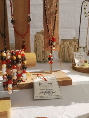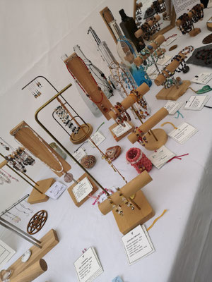 Cette page rassemble donc les dernières pièces liées à cette activité : portants en bois, perles en pierres fines.